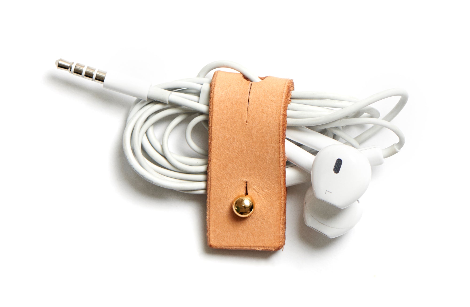 Leather cable organizer: CHARLIE (natural) 3 pack